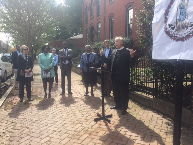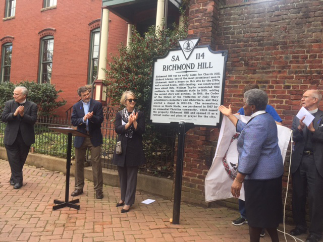 What a glorious occasion! At 11 a.m. on a picture-perfect Tuesday morning, friends, family, neighbors and elected officials gathered on Grace Street for the outdoor dedication of a Marker honoring Richmond Hill’s Building & Grounds as a Historic Landmark of the Commonwealth of Virginia.