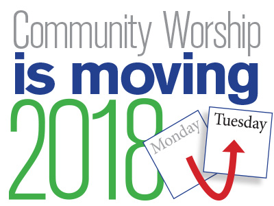Beginning in January 2018, our weekly Community Worship Service will move from Monday to Tuesday evenings. This change will provide our residents with a few additional hours of Sabbath rest and needed time together as “a family.” The shift will happen on Tuesday, January 2. The service will continue to be held in the chapel at the same time as before, 5:30 PM, and be followed by a community meal in our refectory. We hope the change will not be an inconvenience and that you will plan to join us then as now, as we continue to work and pray for the healing of metropolitan Richmond.